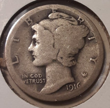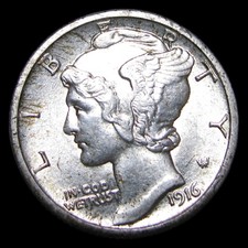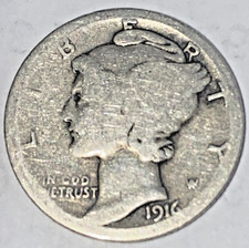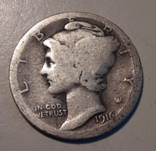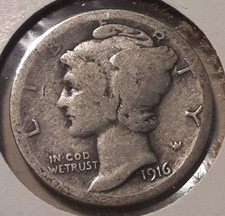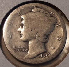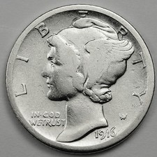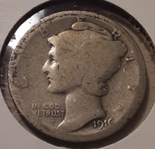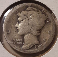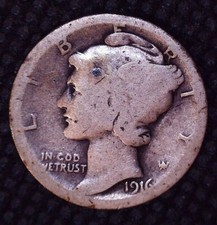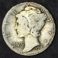 1916-s Mercury Head Dime. Average Grade of Coin You Will Receive is Photographed