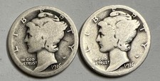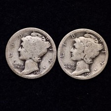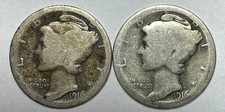 1916 and 1916-S 10C Mercury Dimes Lower Grade 90% Silver