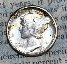 1916-S Silver Mercury Dime Uncirculated Toned FSB