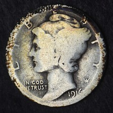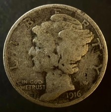 * 1916-S Mercury Silver Dime Circulated G / VG FREE SHIPPING!