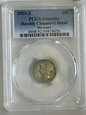 1916-S Mercury Dime Silver PCGS GRADED, G Detail, San Francisco Mint, Silver