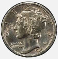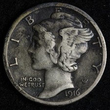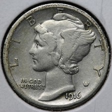 1916-S Mercury Dime 10c San Francisco Mint 90% US Silver (#28u-75) Winged Cap