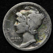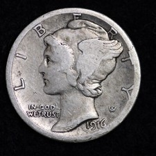 1916-S Mercury Dime 10c San Francisco Mint 90% US Silver (#116w-71) Winged Cap