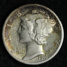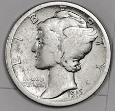 1916-S Mercury Dime 10c San Francisco Mint 90% US Silver (#31u-75) Winged Cap