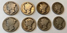 Lot of 8 1916-S Mercury Dimes First year issue 90% Silver