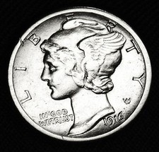 1916-S Mercury Dime 10 cents USA Coin 90% Silver Liberty Freedom WWI