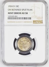1924-D NGC AU58 Gigantic Retained Split Planchet Mercury Dime EXTREMELY RARE 10C