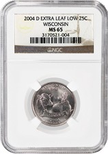 2004 D 25C Washington Quarter Wisconsin Extra Leaf Low NGC MS65 BU Coin