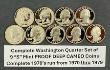 1970-1979 S Complete Set Washington Quarters Gem Proof Run 9 Coins US Mint 1970s