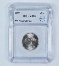 2007-P State Quarter Wyoming Mint Error Planchet Flaw MS66 ICG