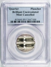 QUARTER BLANK 25c MINT CANCELLED ERROR COIN IN A PCGS HOLDER