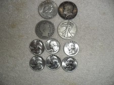 Liberty Walking Barber 1964 Kennedy half dollar quarters lot of 10