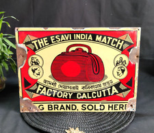 Antique ESAVI India Bag Brand Match Box Advertising Enamel Sign Board Rare EB675