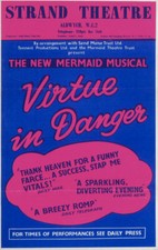 Strand Theatre, Aldwych - Virtue in Danger. Musical. Advertising poster 1963