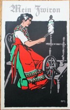BPG/Artist-Signed 1920 Advertising Poster/Note Paper: Spinning Wheel Woman