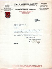 1912 Letterhead - Ivan B. Nordhem Company, Pittsburgh PA - Poster Advertising