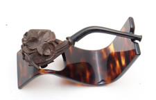 Vintage Carved Tobacco Pipe Cutty Amber Color Stem W Fitted Case Floral