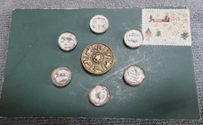 7 Vintage Antique Glass & Metal Picture Buttons Signs of Zodiac
