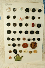 Collectors Card of 42 Vintage and Antique Glass Buttons Dated on the back 1959