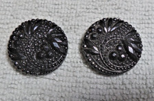 2 Vintage Antique Black Facet Glass Picture Buttons FANCY FLOWER DESIGN