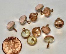 VINTAGE 12 CHAMPAGNE PINK GLASS BUTTONS ANTIQUE FACETED BEAD BRASS SHANK 9.2mm