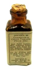 1941 Advertising Chandler's Chick Tablets Pill Bottle Paper Label w/ Box (G32)