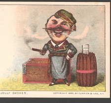 Antique 1880 Currier & Ives Jolly Smoker Cigar Comic Tobacco Trade Card SR.132