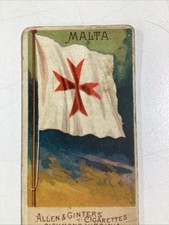 Tobacco Card 1800s Original Antique Allen Ginter Nation Flag Malta