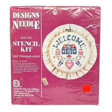 Unused Vintage Stencil Kit House Welcome 5006 in 8in Framing Hoop, Quilted Desig