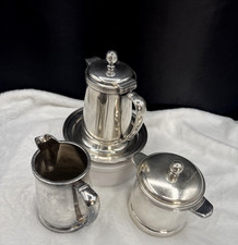 Antique Intl Silver Co Soldered Hotel Railroad 3pc Coffee Set #05060C
