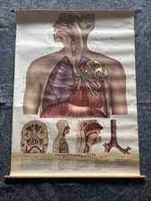 Vintage Canvas Schick Medical Roll Up Poster Chart Respiratory System 1945
