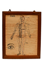 Antique Hand Painted Acupuncture Chart Front View Human Anatomy Art India 1940s