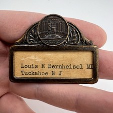 Medical Society of New Jersey ANTIQUE Bronze Name Tag Pin NAMED NICE