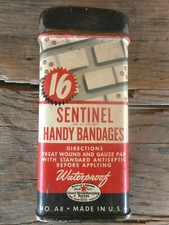 Antique Bandage Sentinel Tin Military Silhouette Small Rusty Hinged Pharmacy
