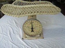 Antique Chatillon Capacity 25 Pound Baby Scale w/ 25" x 14" Wicker Basket USA