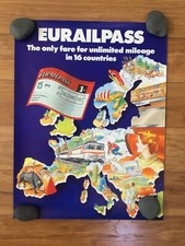 ORIGINAL VINTAGE SNCF FRENCH NATIONAL RAILROAD POSTER ADVERTISING EURAILPASS