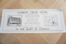 c1930s Charing Cross Hotel Southern Railway Carriage Advertising Poster with Map