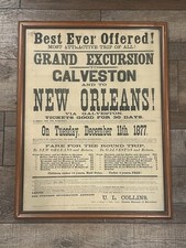 1877 GRAND EXCURSION RAILROAD Advertising Sign Poster Flyer TEXAS to New Orleans