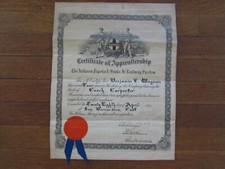 Antique Santa Fe RR Certificate of Apprenticeship 1914, Railroad Memorabilia