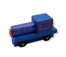 Small Red & Blue Wood Toy Train Steam Engine with Rolling Wheels Vintage