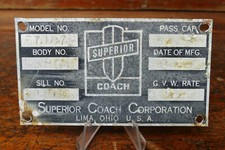 Vintage Superior Coach Corporation Bus Metal ID Tag Emblem Advertising Sign RARE
