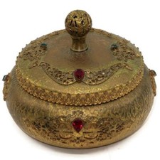 Antique Gilt Bronze & Jeweled Trinket Jewelry Covered Jar