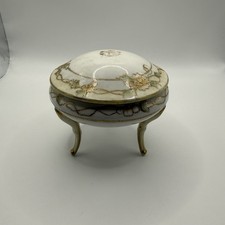 Antique Nippon Hand Painted Footed Powder Jar Trinket Dish w/ Lid Gold Trim