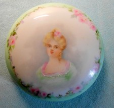 Antique Limoges Portrait Dresser Jar Elite France Powder Box w Puff c1900