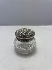 Antique Sterling Silver & Cut Crystal Dresser Jar Trinket Container 15grams