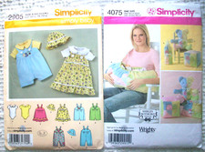 SIMPLICITY 2 Vintage Sewing Pattern 2905 4075 Baby Overalls Dress Hat Pillow Toy