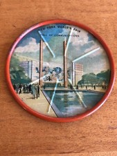 Antique Worlds Fair 1939 New York Glass Wood Ashtray Collectible