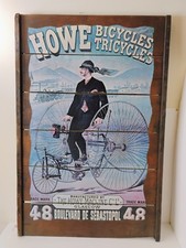 Howe Bicycles Tricycles Wooden Advertising Sign 24"x 36" Vintage