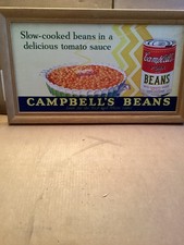 VINTAGE CAMPBELLS PORK AND BEANS TROLLEY CAR OVERHEAD ADVERTISING CARDBOARD SIGN