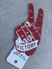 Kendall Oil Corp. VICTORY License Plate Topper Metal Advertising Sign with Hand